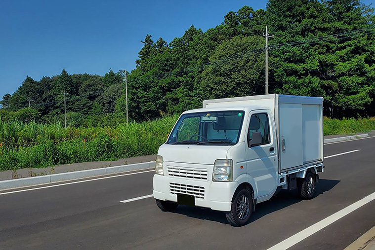 軽自動車の荷室に保冷、冷蔵、または冷凍設備を搭載した特装車で、小口・小ロットの生鮮食品や冷凍品の配送を低コストかつ機動性高く行うために使用されます。