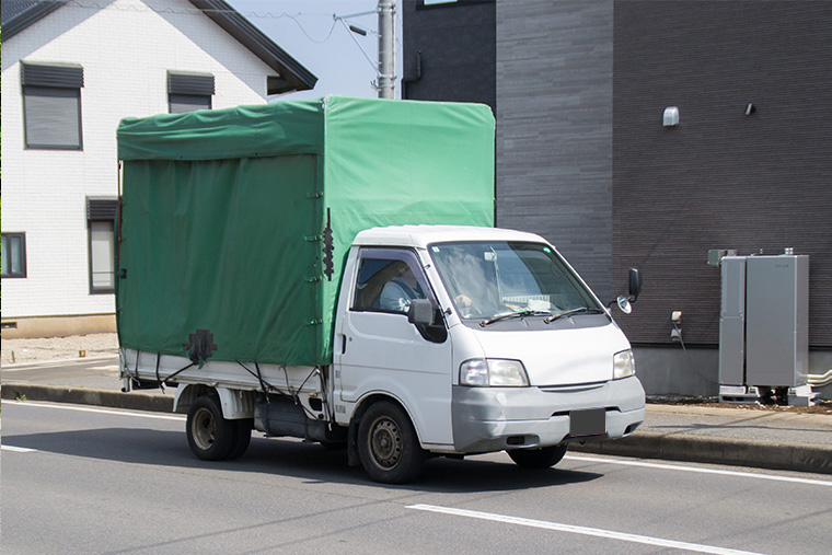 軽トラックの荷台部分に、骨組みと布やビニール製のカバー(幌)を取り付けた車両で、雨や風から積荷を守りつつ、背の高い荷物や不定形な荷物を柔軟に積載できるのが特徴です。